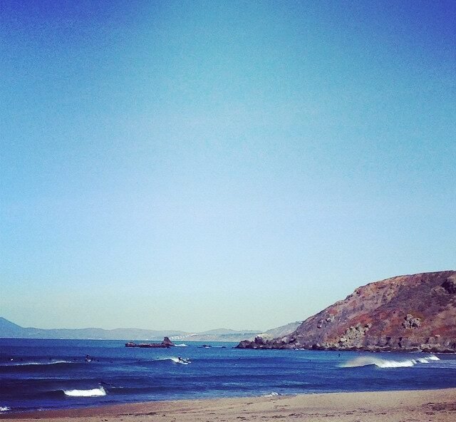 overhead on the west swell looking towards maverick’s
